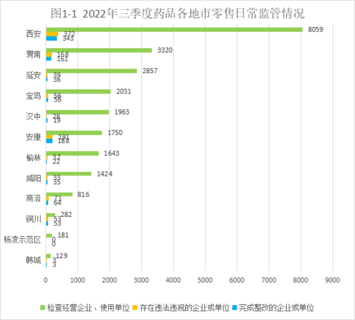截至2022年三季度末,全省实有药品经营批发企业561家,药品经营零售企业17404家。全省实有互联网药品信息服务机构765家。