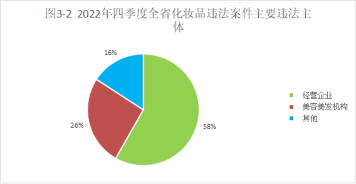 从案件来源看,来源于日常监管和专项检查的案件125件(占比79%)。从案件的违法主体看,来源于化妆品经营企业的案件92件(占比58%),来源于美容美发机构的案件41件(占比26%)。