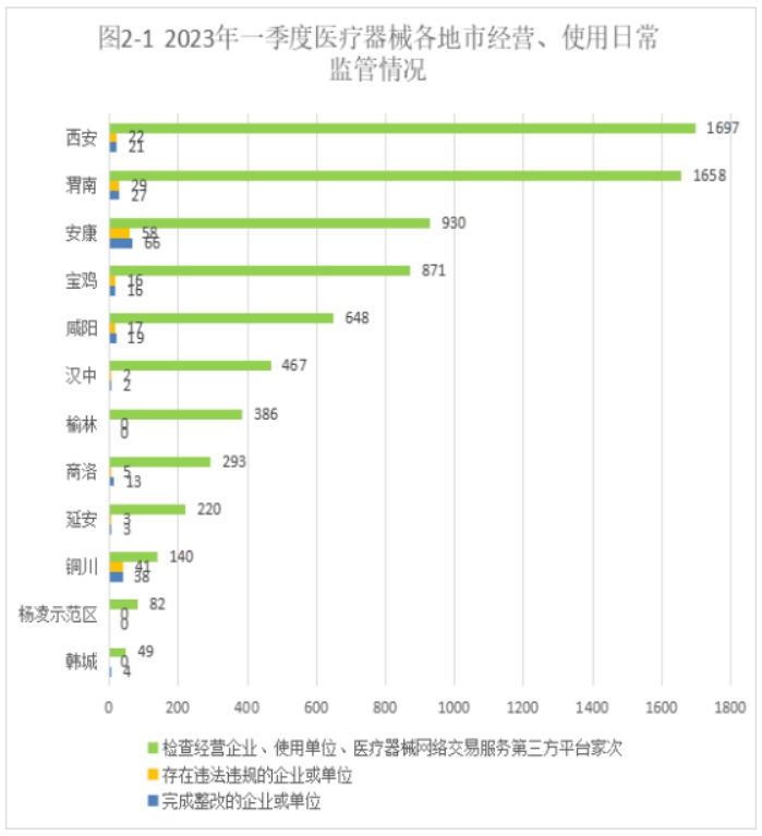 2023年一季度,全省共检查医疗器械生产企业111家次,同比增长0.9%,环比下降32.3%,其中全面检查高风险企业44家次,飞行检查5家次。
