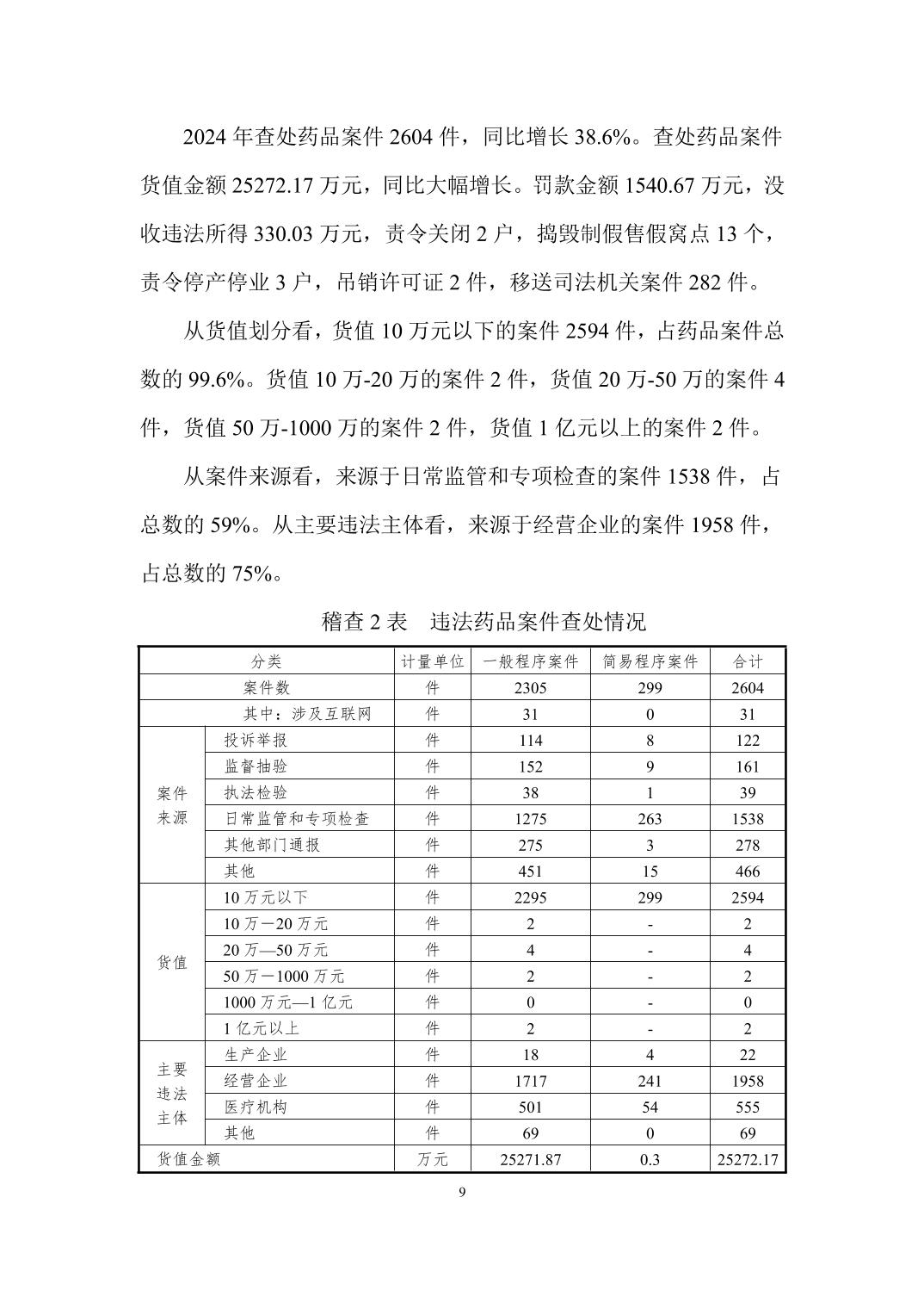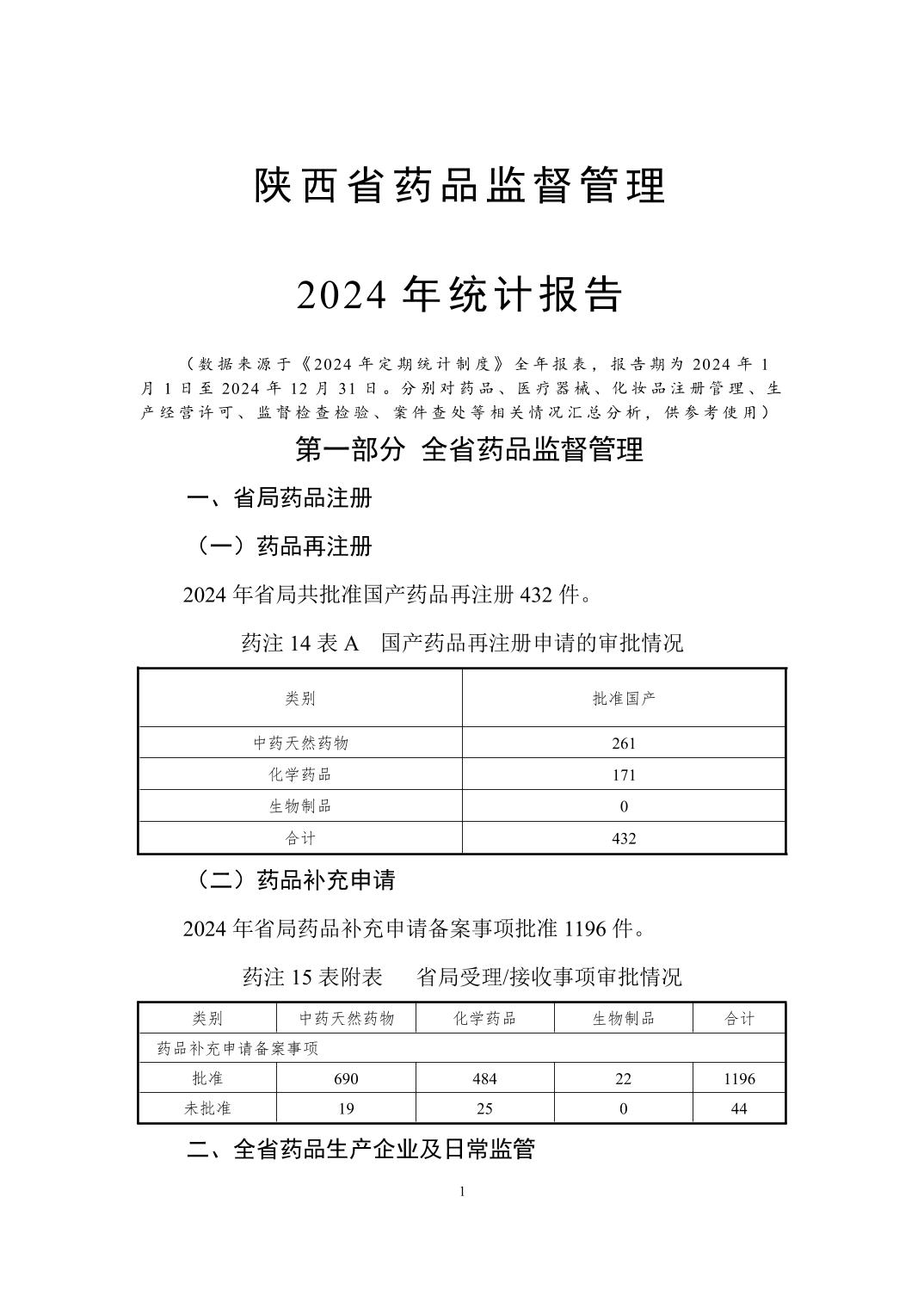 陕西省药品监督管理2024年统计报告