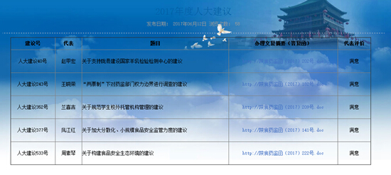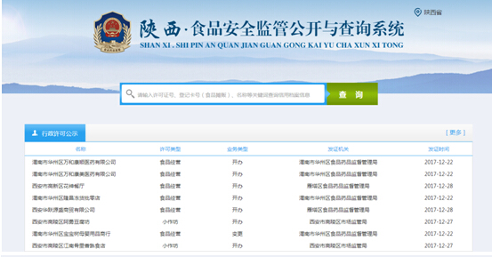4.监管信息:根据《2017年陕西省政务公开工作要点任务分解细化方案》安排,我局牵头负责食品药品安全领域信息公开。我局以全省统一建设部署分级应用的综合业务系统为依托,对行政许可、监督检查、监督抽检、稽查执法、信用评级、风险评级等信息在互联网上实时公开,实现了全省食药监管信息的统一公开公示,查询网址gkgs.sxfda.gov. cn,方便的百姓信息查询需求。医药代表登记备案信息公开因国家总局相关管理办法还在征求意见阶段,没有进入实施期,不具备公开条件。