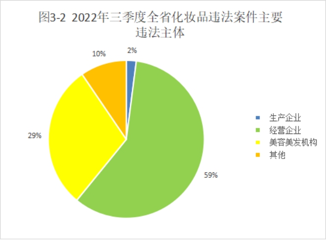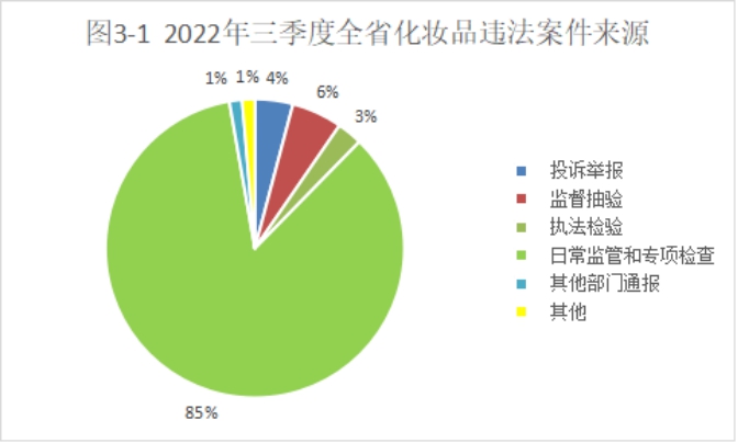 从案件来源看,来源于日常监管和专项检查的案件124件(占比85%)。从案件的违法主体看,来源于化妆品经营企业的案件86件(占比59%),来源于美容美发机构的案件43件(占比29%)。