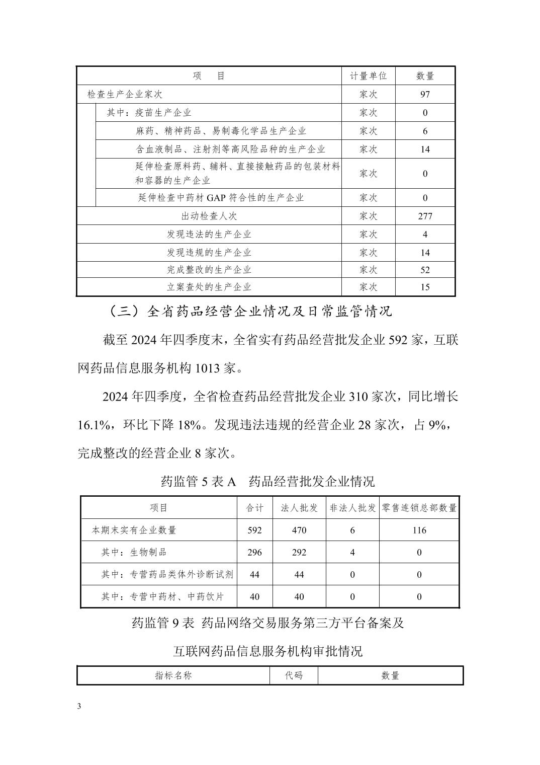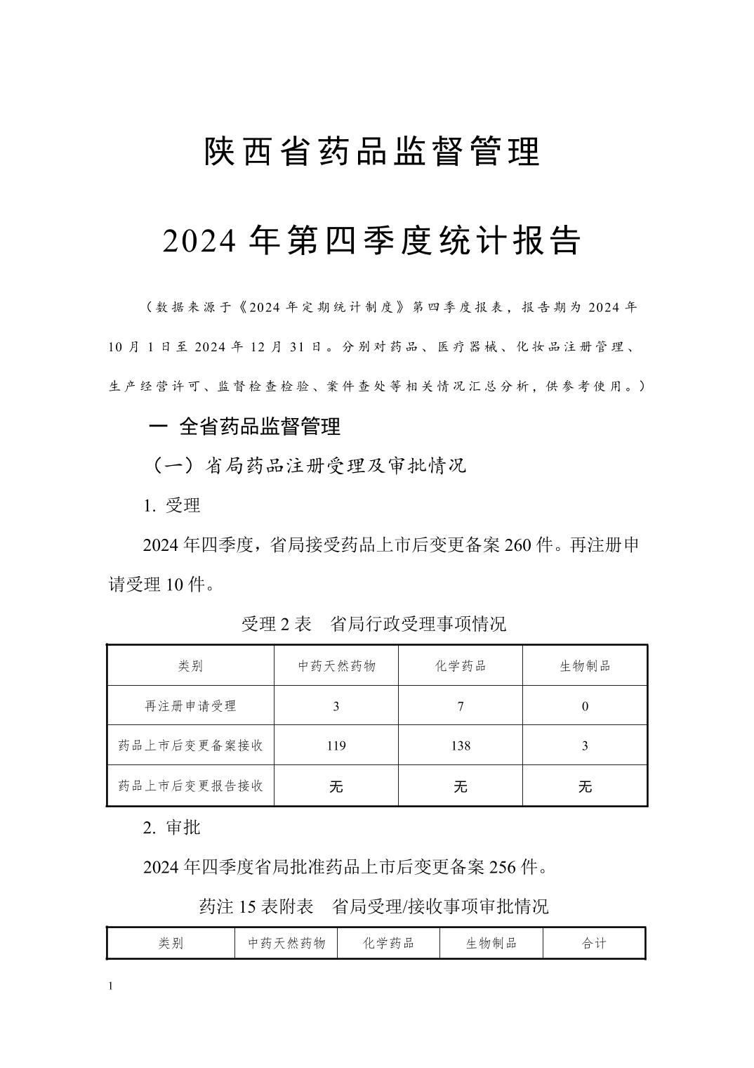 陕西省药品监督管理2024年第四季度统计报告